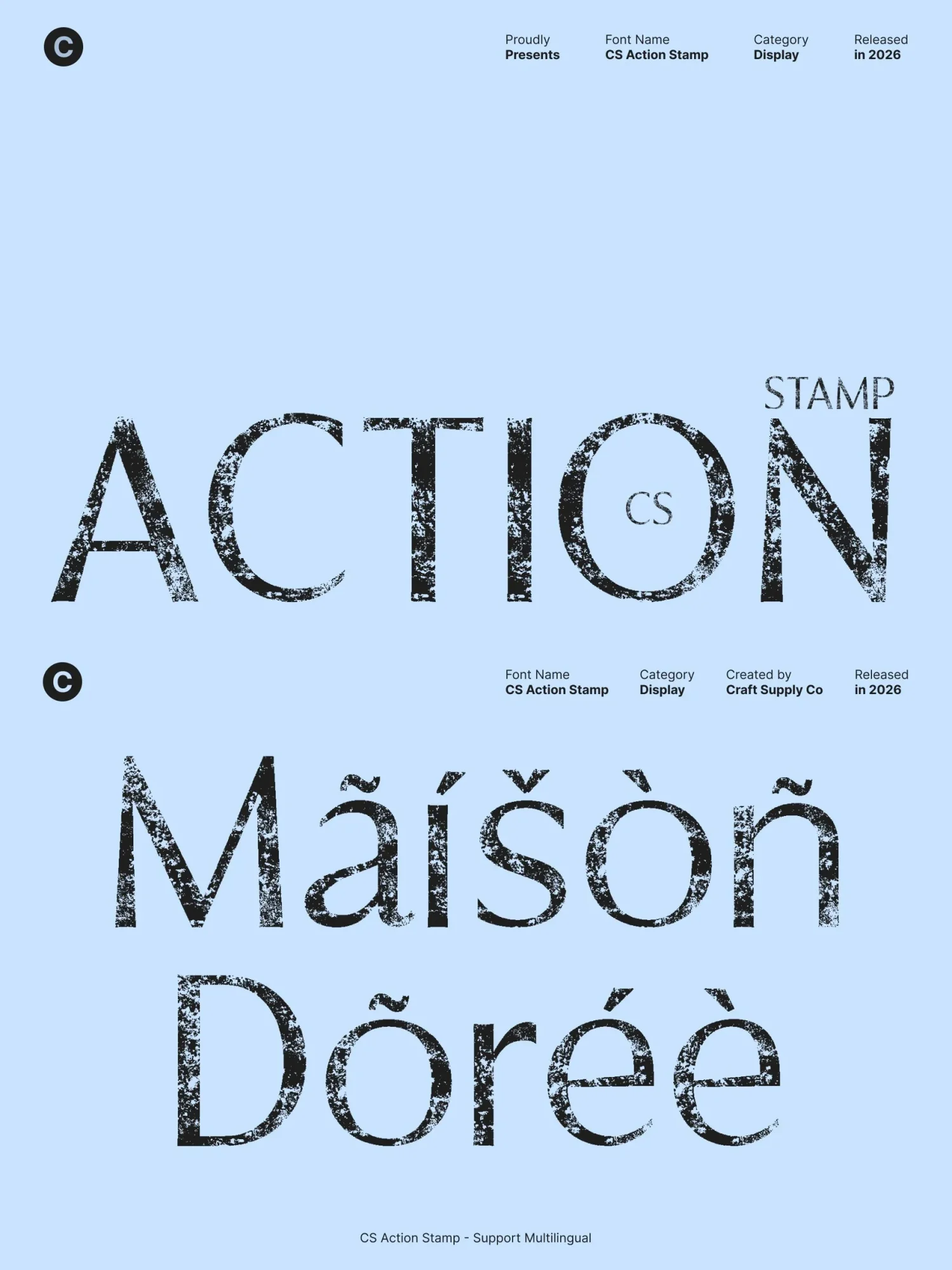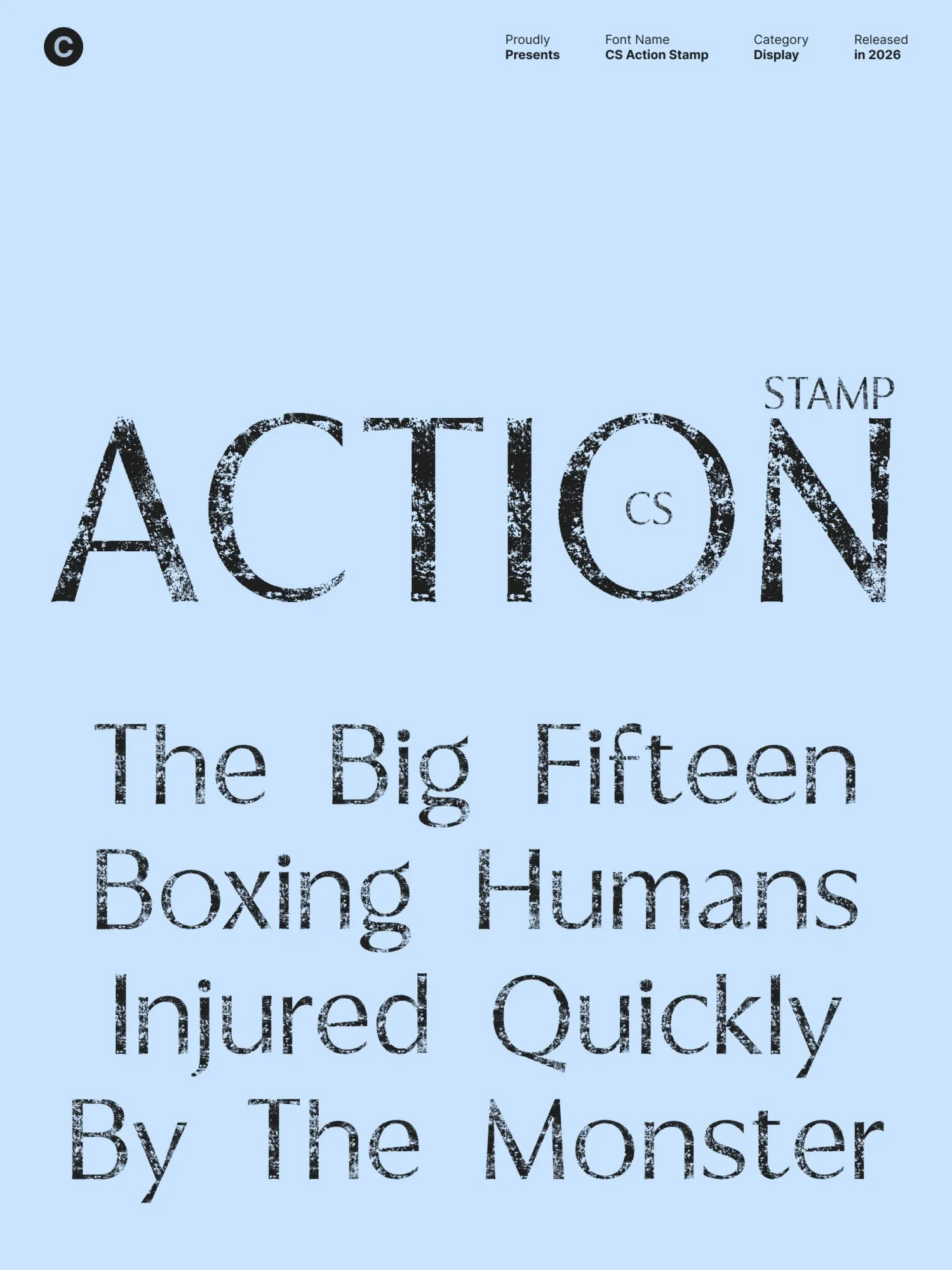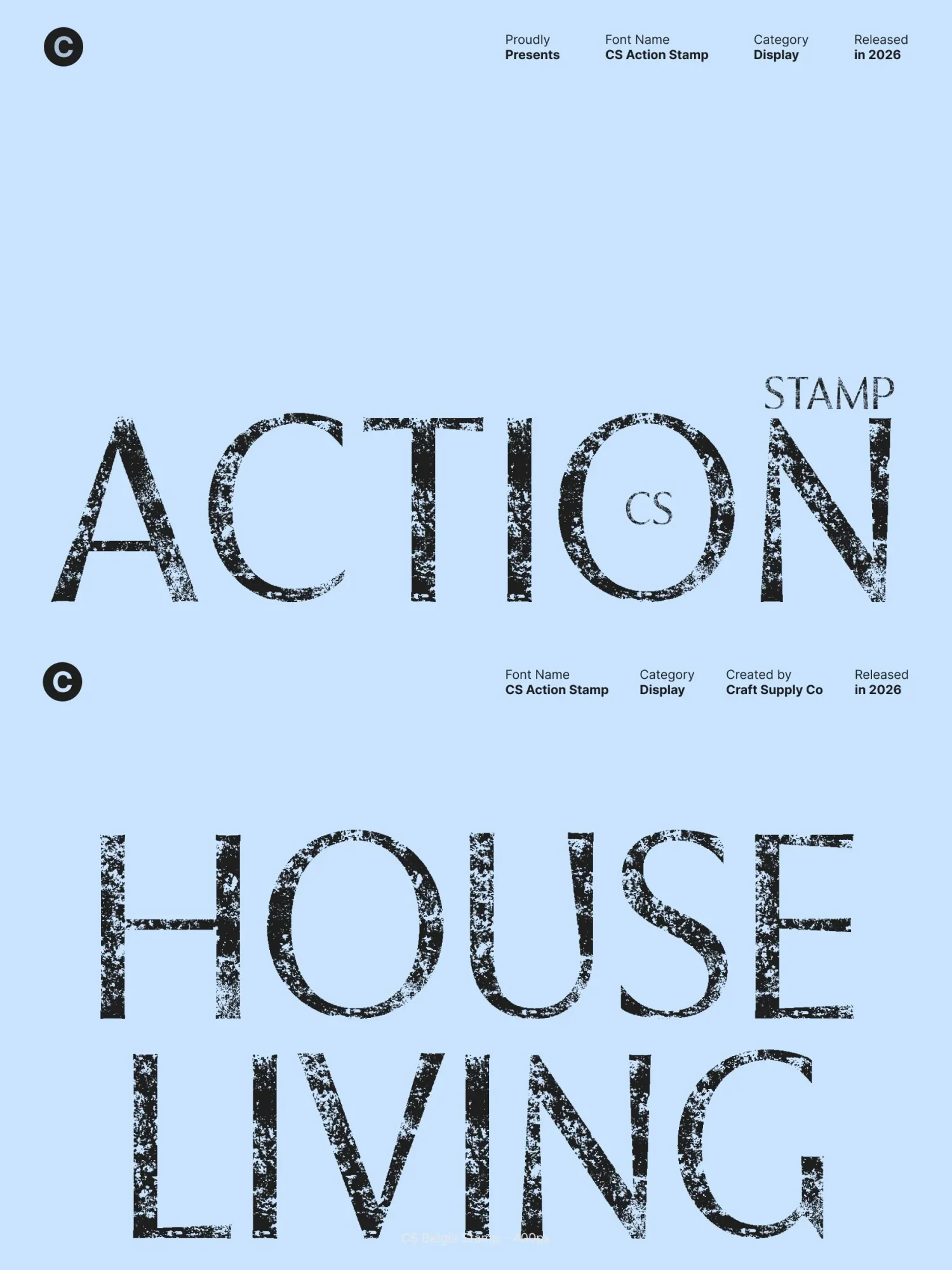 Enhanced with a distinctive stamp effect, this font introduces light texture and organic imperfections to its clean forms. This stamped finish adds a vintage-inspired edge and tactile depth, preventing the design from feeling overly sterile. The result is a sans-serif font that feels bold, expressive, and visually engaging.