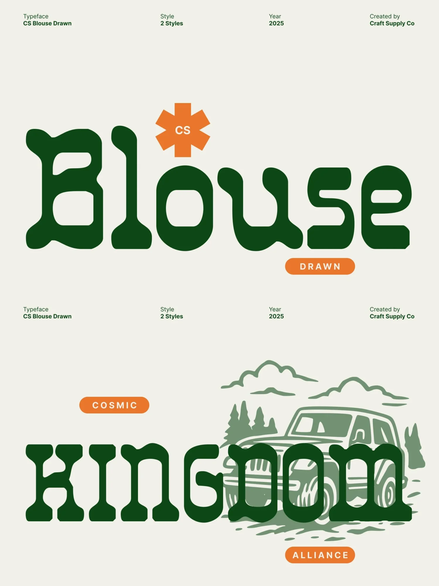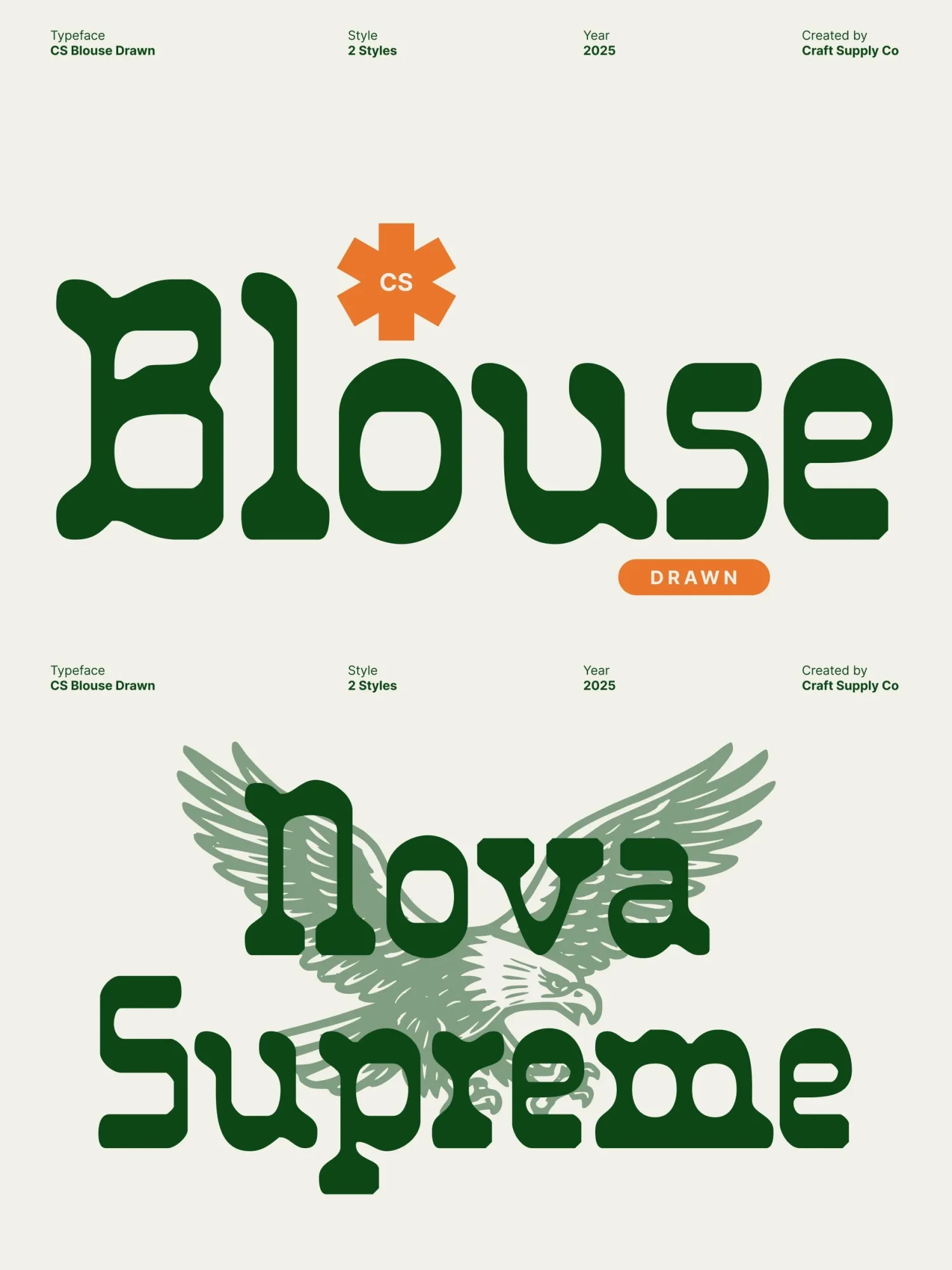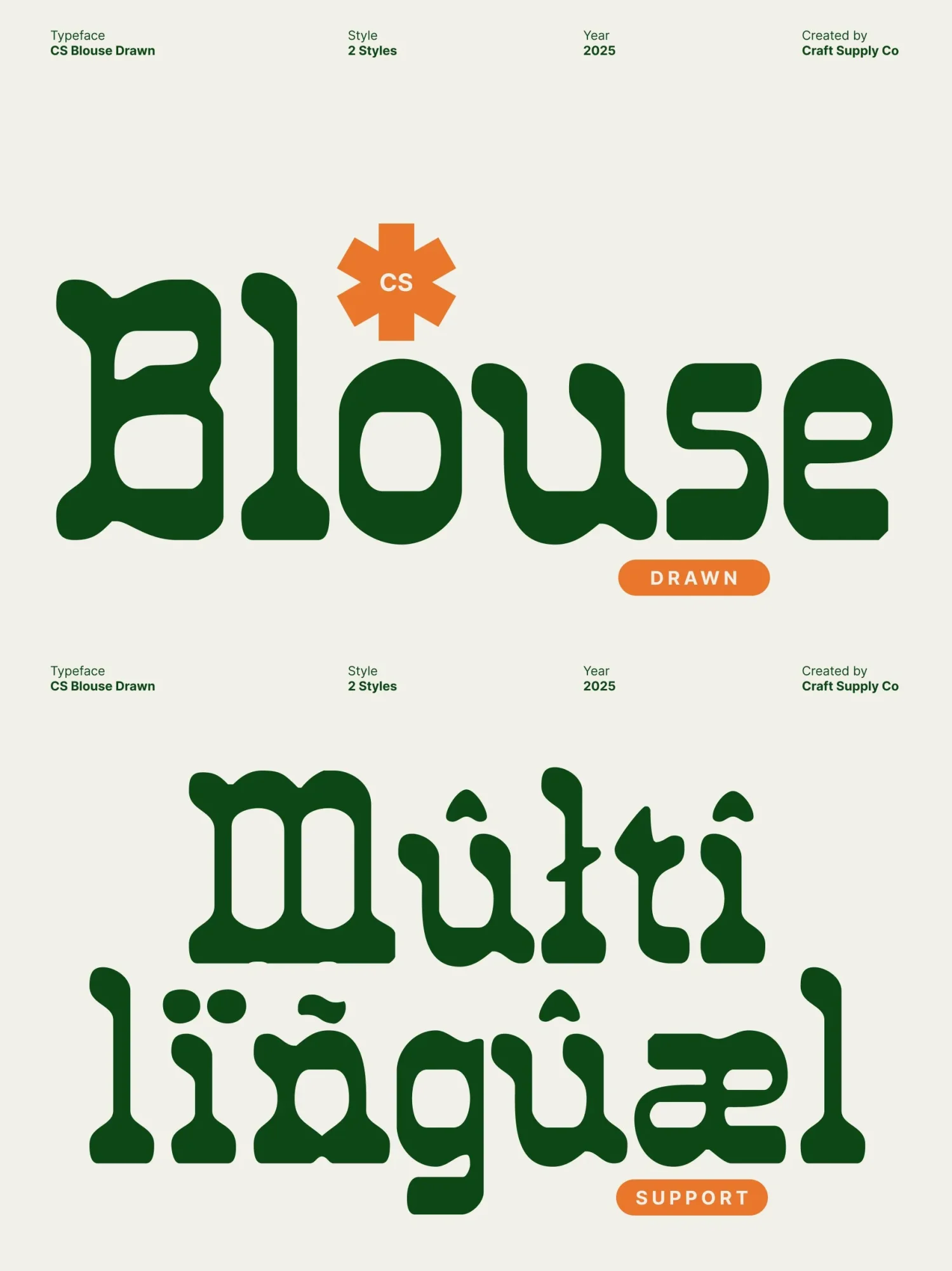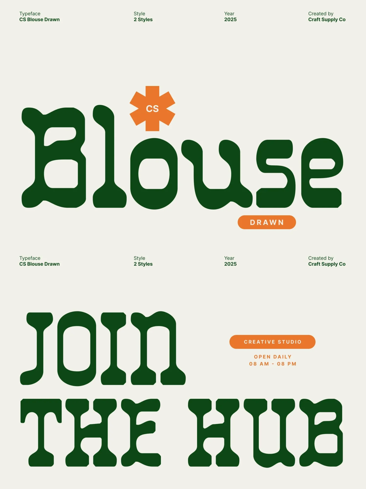 With its bold shapes and hand drawn character, this font stands out effortlessly in display use. The drawn detailing adds warmth and authenticity, softening its strong geometry and lending a crafted, human touch. Each letter embodies a perfect blend of structure and spontaneity, ideal for designers who want to make a memorable visual statement.