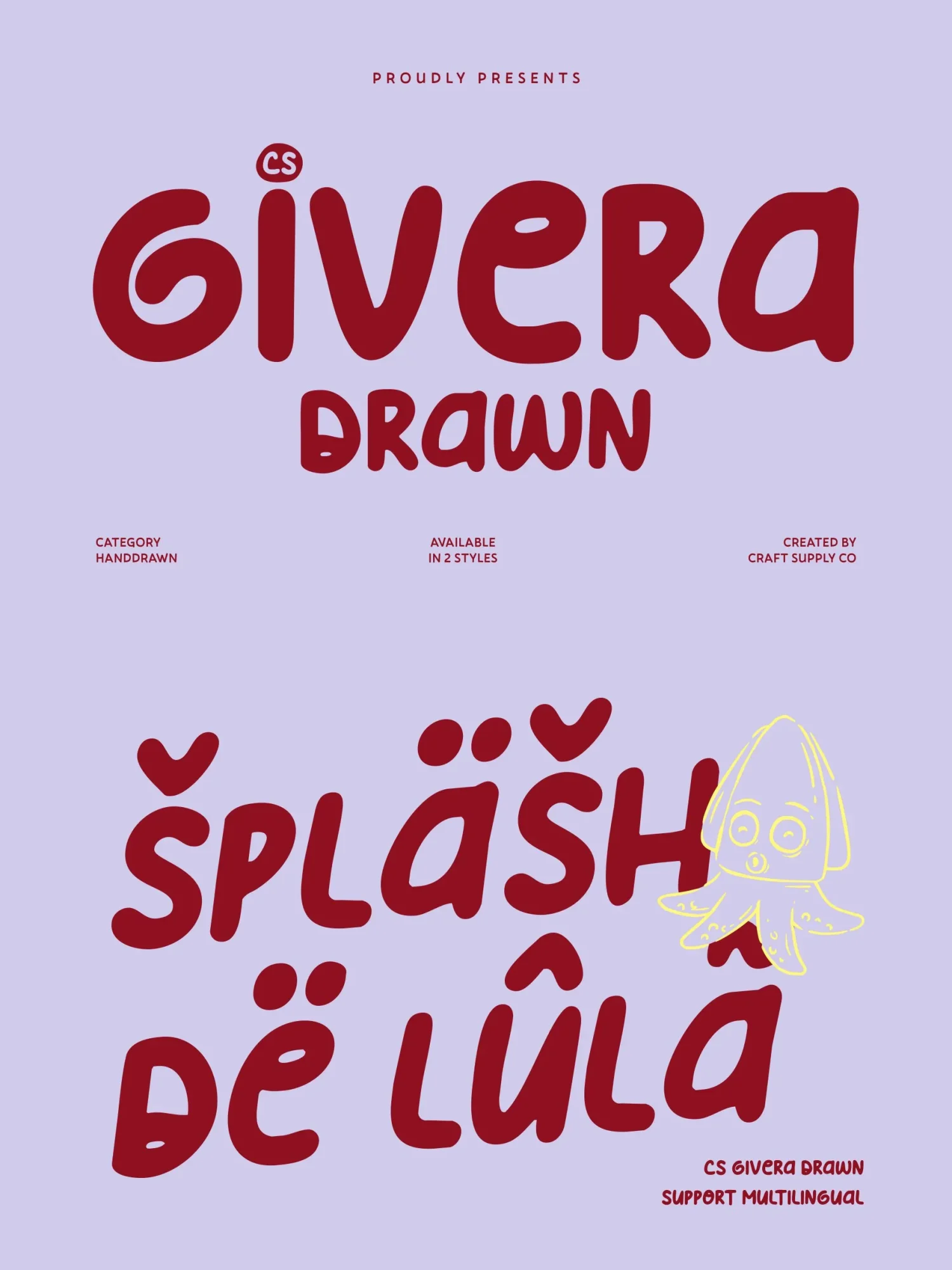 This is a fun display font designed to bring playful energy and friendly expression to every project. Its bold strokes and lively shapes are enhanced by a hand-drawn effect, giving each letter a unique character. This artistic touch adds warmth and personality, creating a youthful visual tone that instantly captures attention.