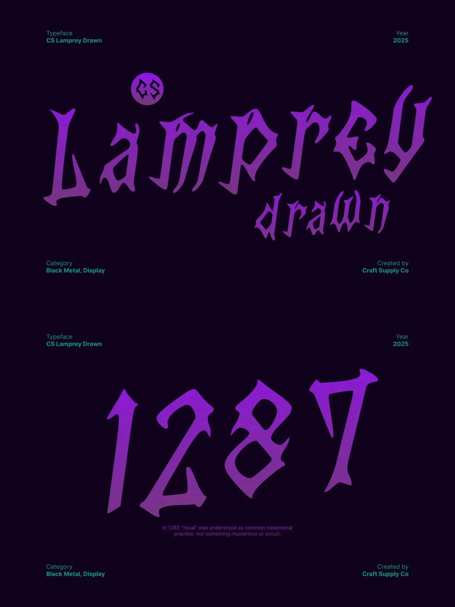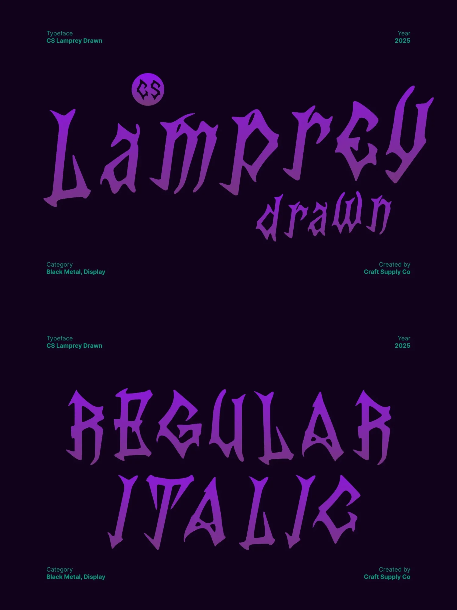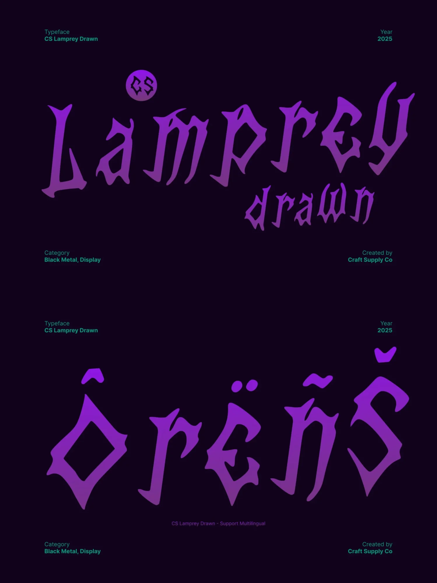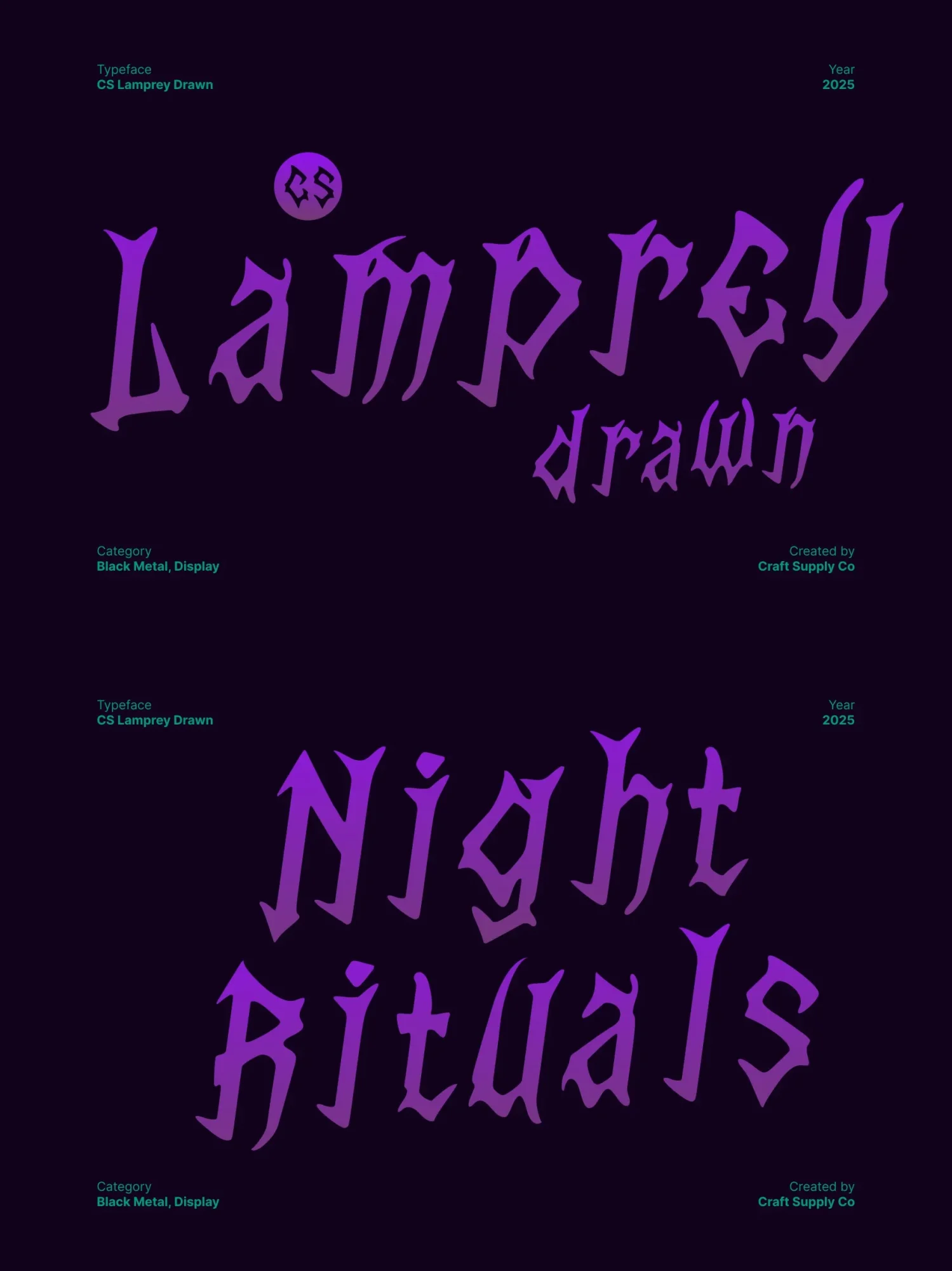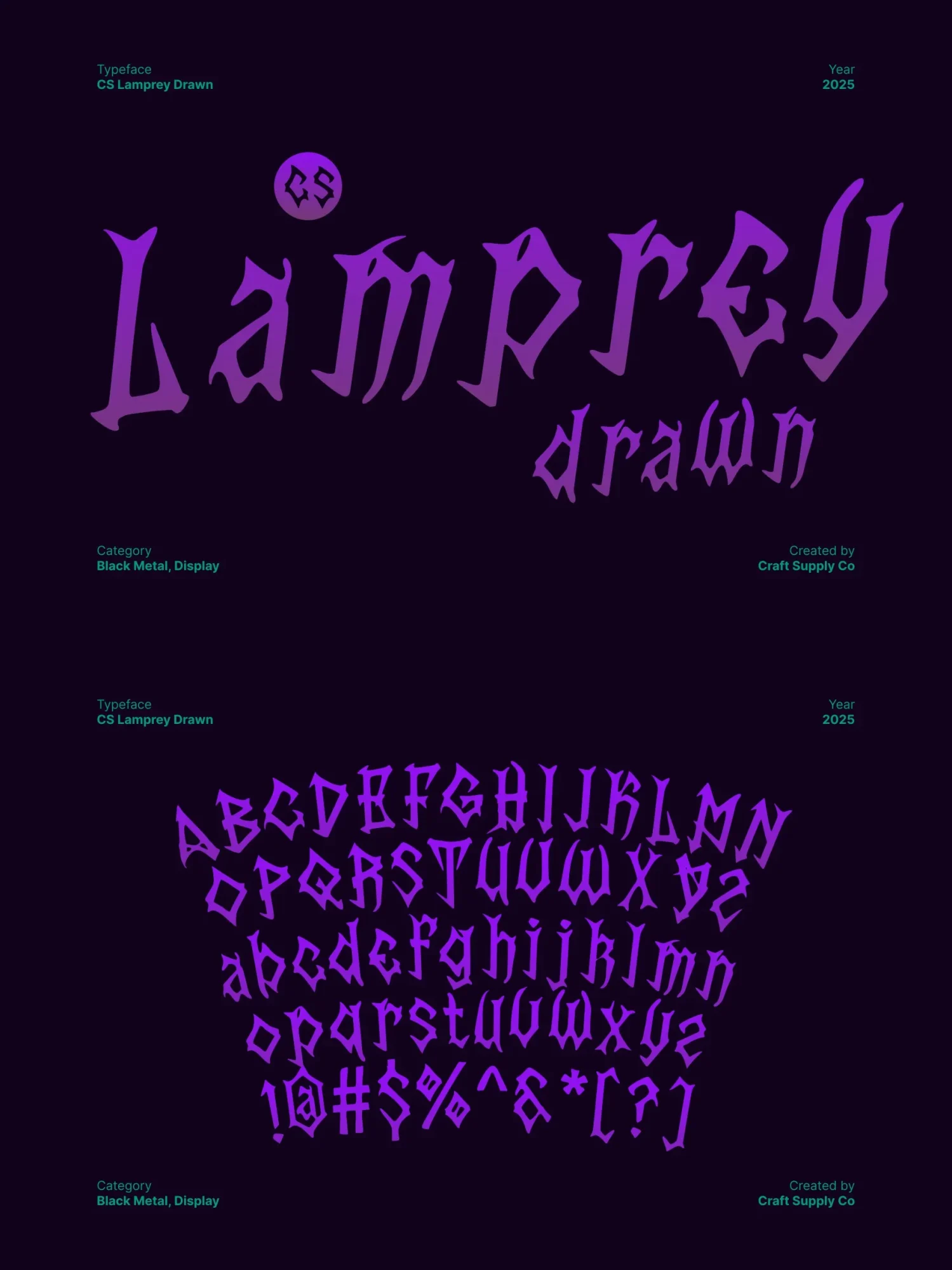 This is a black metal display font crafted for designers who want to inject raw power and chaotic expression into their visuals. Featuring razor-sharp spikes, distorted forms, and violently hand-drawn strokes, this font radiates darkness from the very first glance.