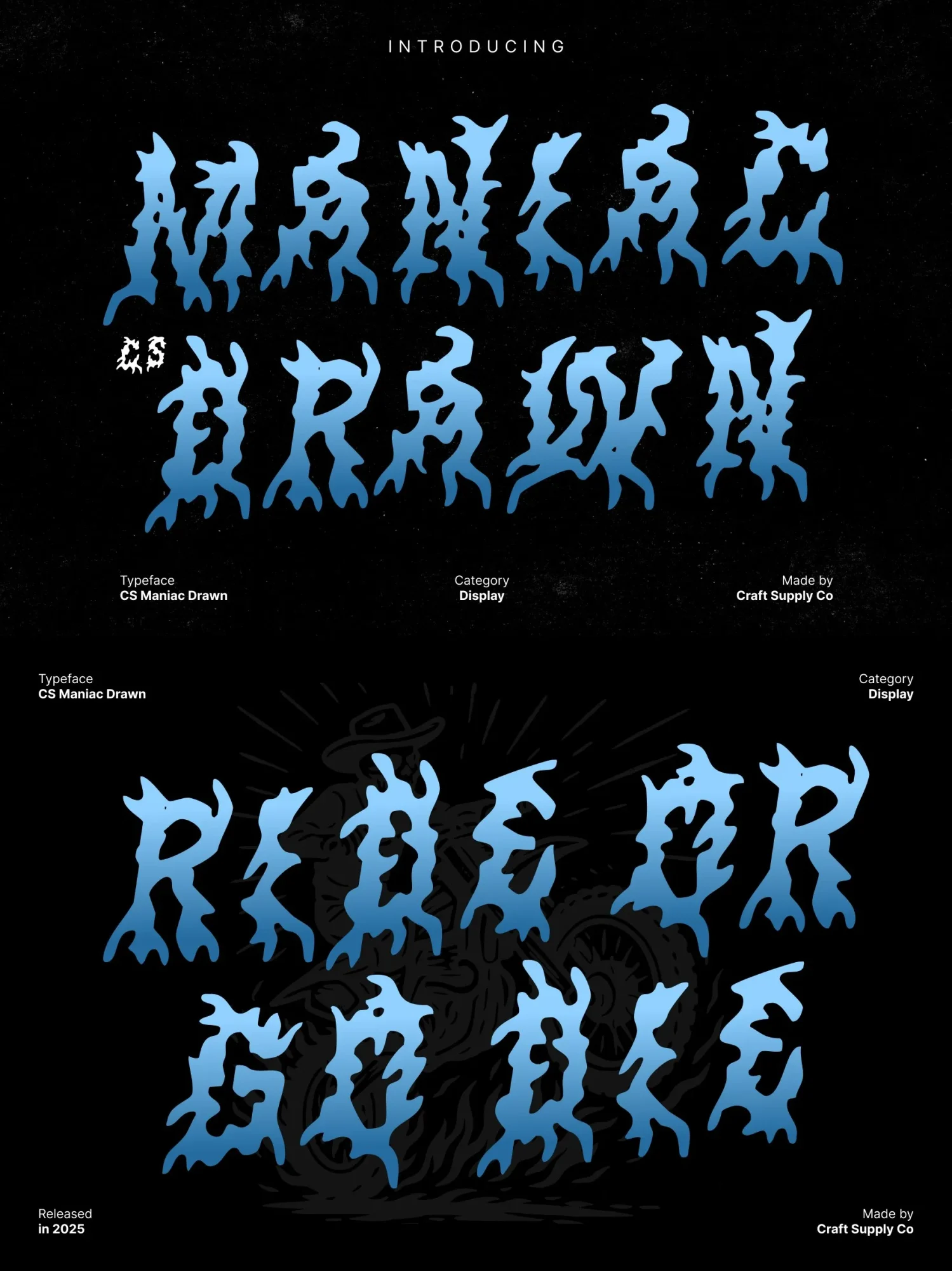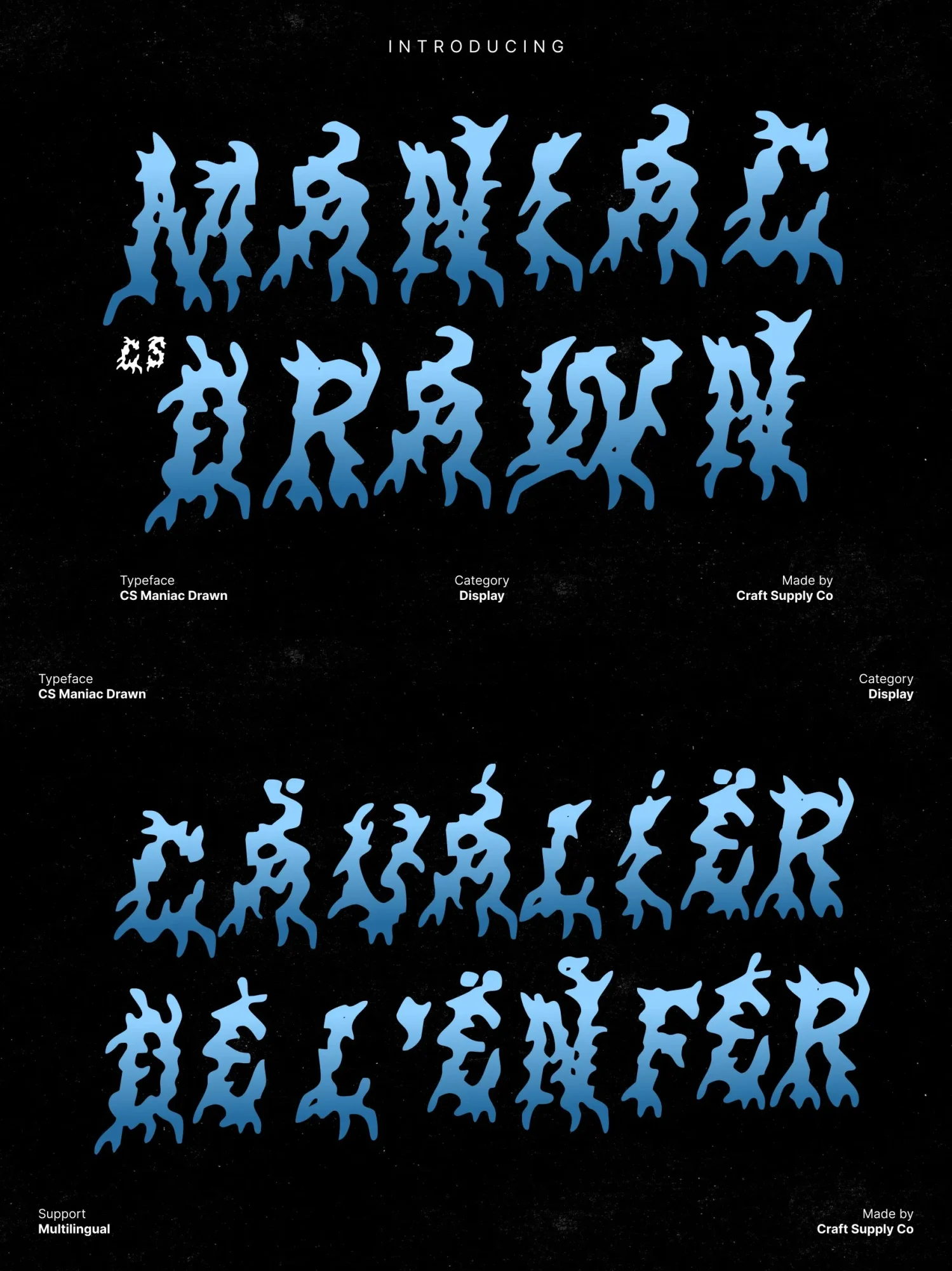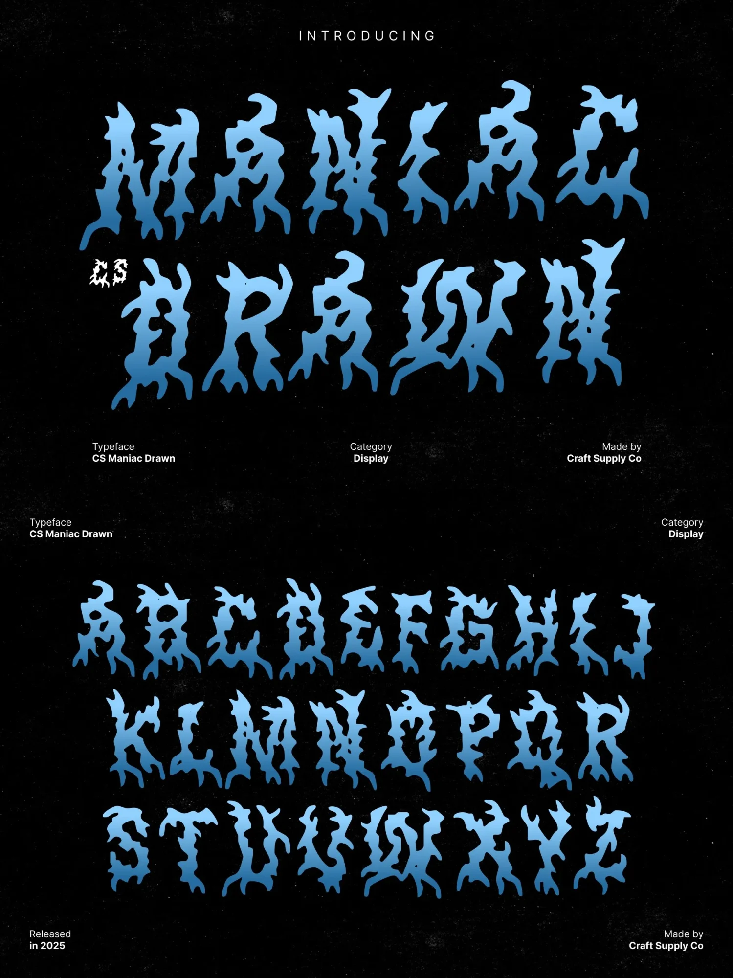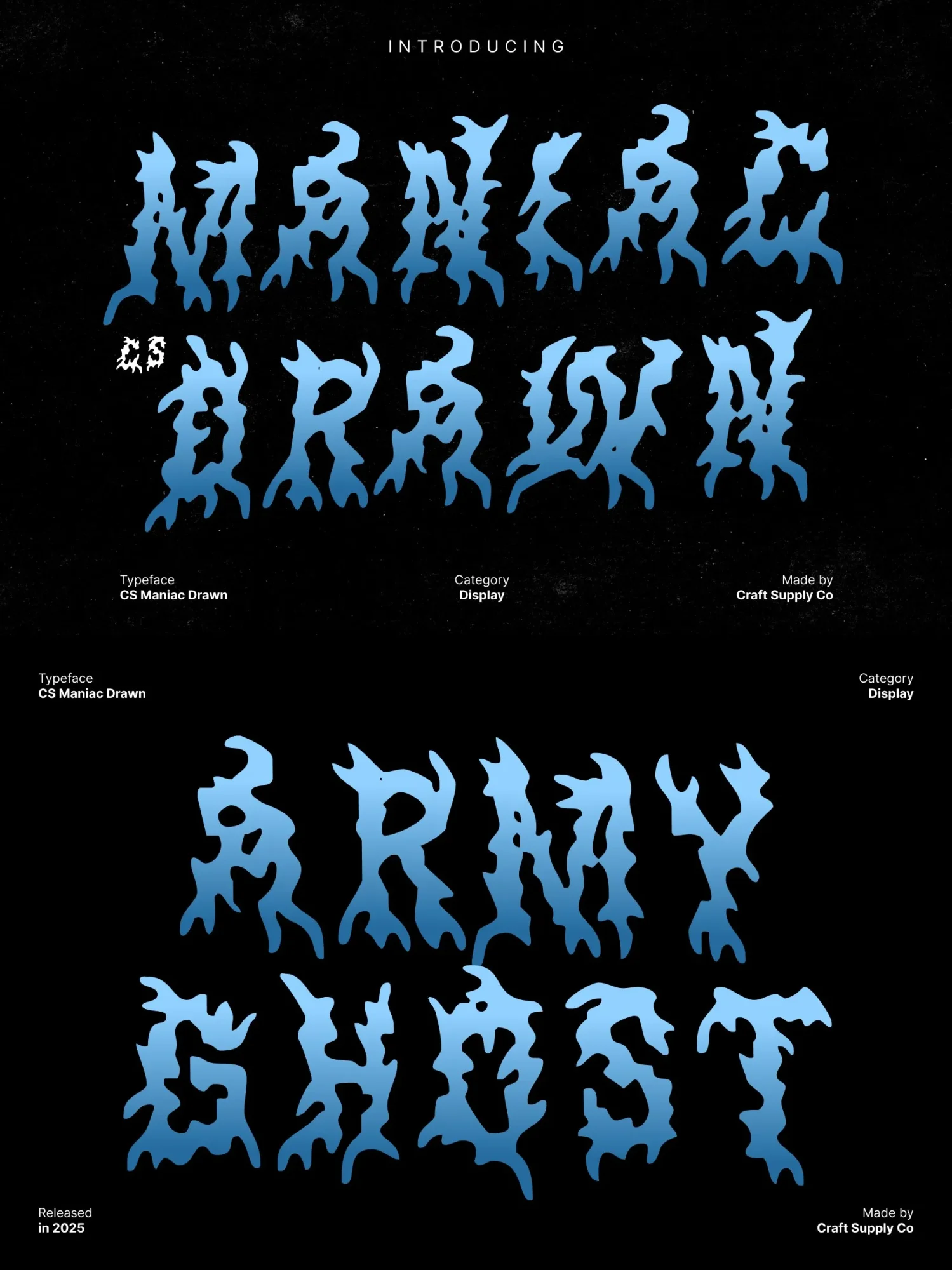 This is a fiercely expressive black metal display font built to radiate aggression, darkness, and unrestrained energy. Its jagged spikes, chaotic strokes, and razor-sharp silhouettes echo the raw brutality of extreme music genres.