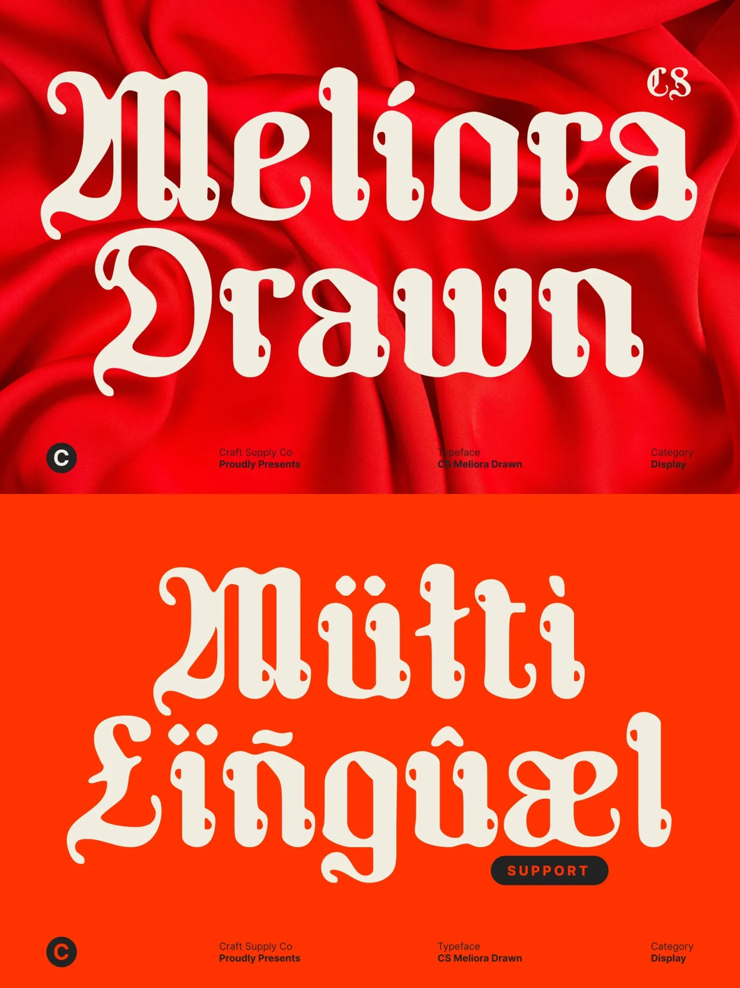 This is a modern blackletter display font that reinterprets classic Gothic typography through a contemporary lens. Rooted in tradition yet refined for today’s visual culture, this typeface features bold, angular strokes and ornamental blackletter character, softened by cleaner contours and a subtle hand-drawn texture.