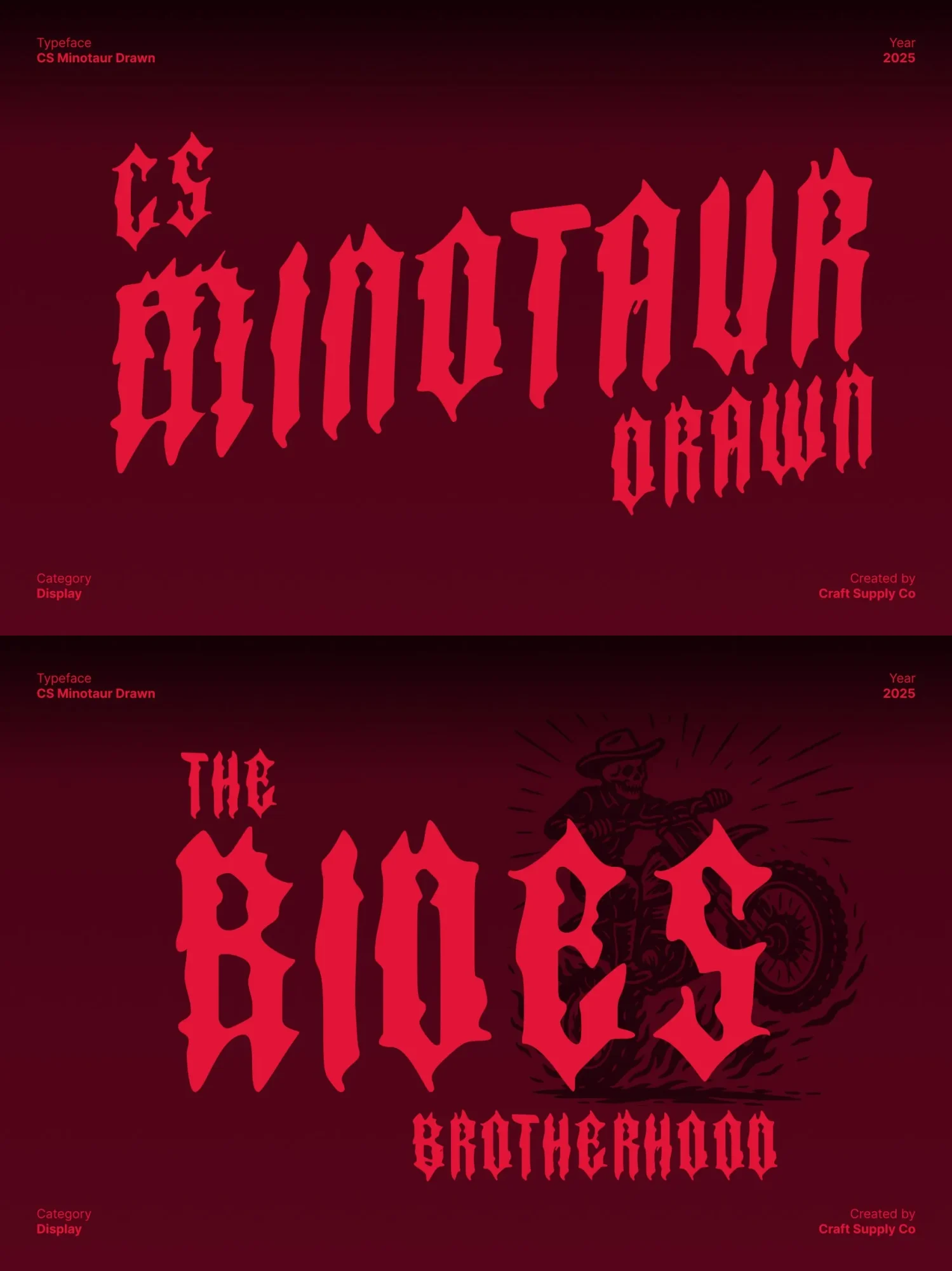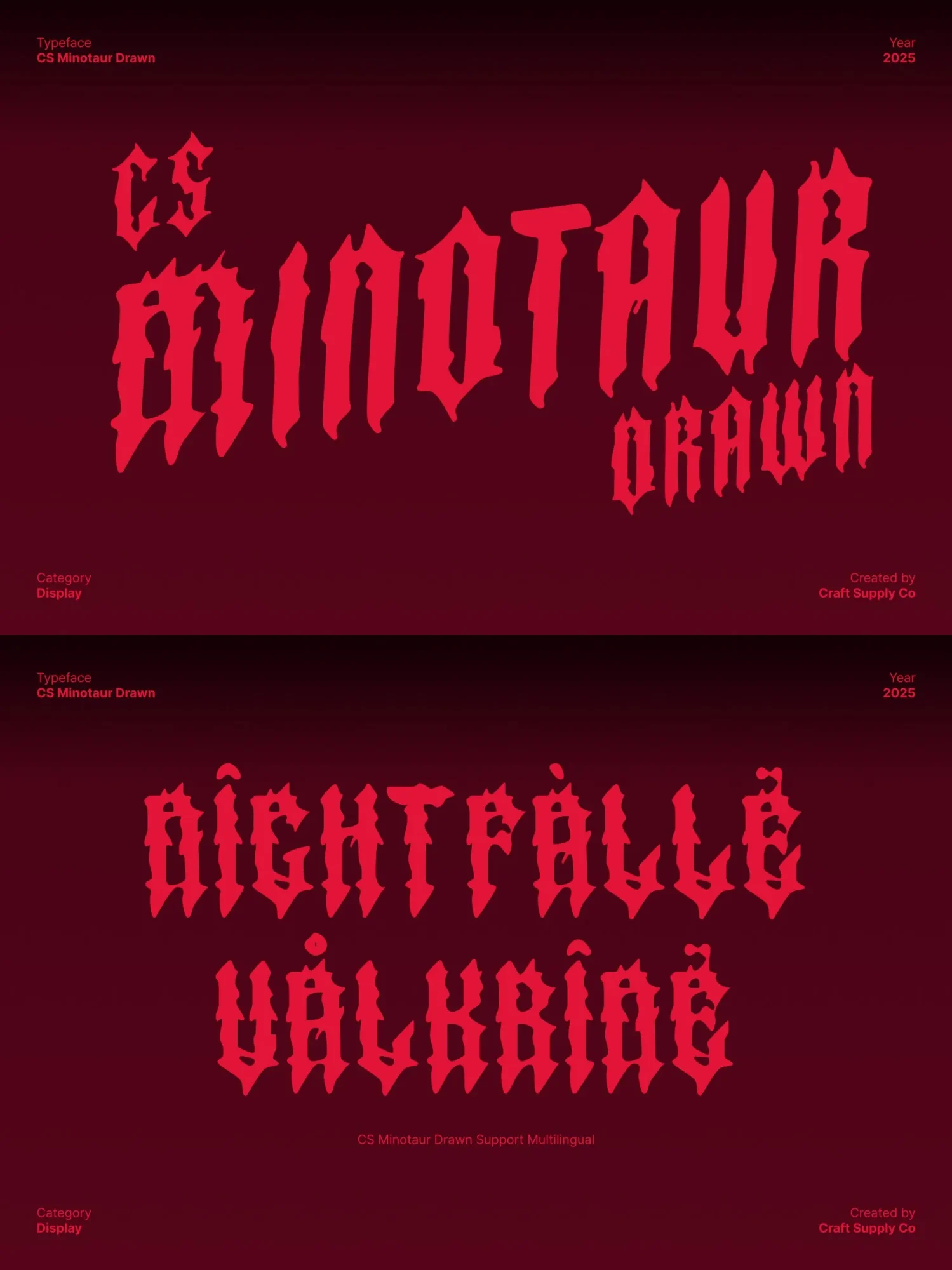 Designed for high-impact visuals, thrives in band logos, music posters, album covers, horror-themed art, and edgy branding projects. Its brutal letterforms cut through any layout with intensity, commanding attention and setting a dark, powerful tone.