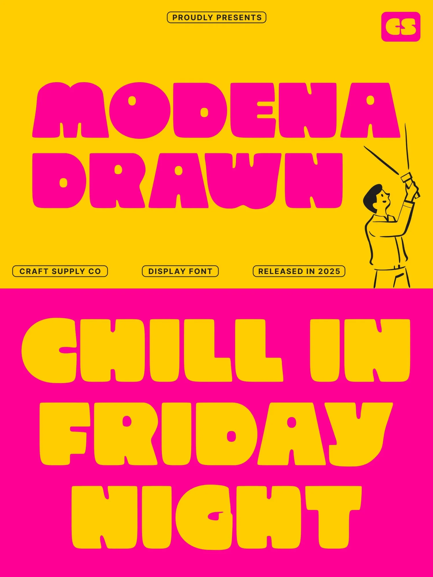 This is a bold sans-serif display font built with strong, clean letterforms and confident proportions. Its solid structure delivers clarity and impact, while the subtle hand-drawn texture introduces a lively, funky charm that adds personality without sacrificing readability.