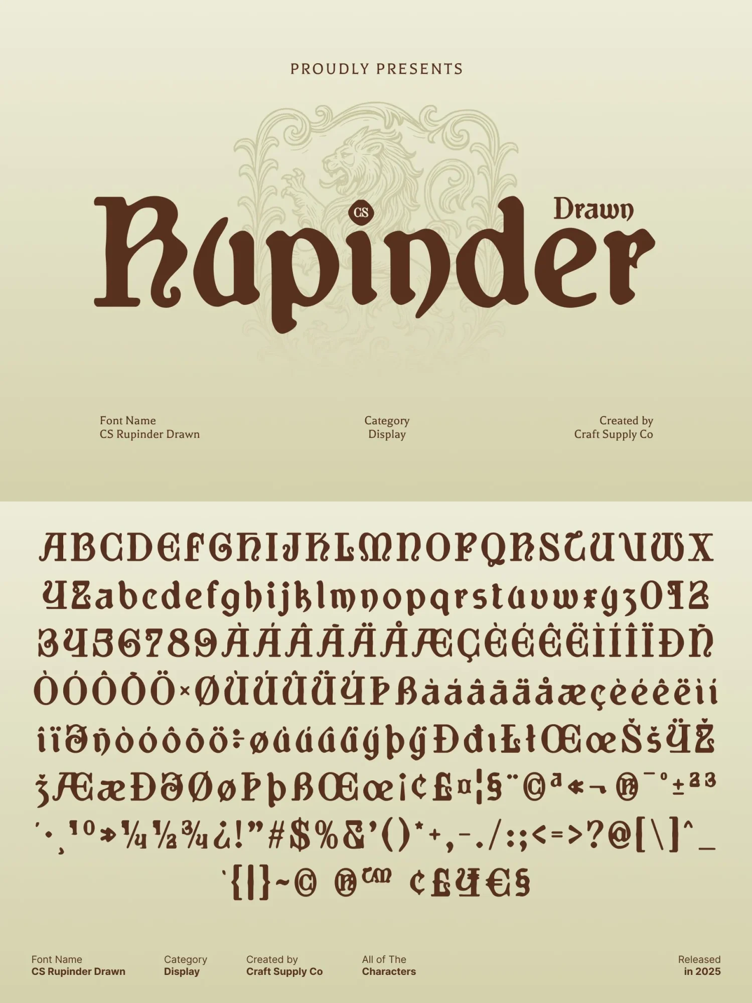 Whether used in editorial layouts, cultural designs, or visually bold campaigns, this font delivers a balance of gothic precision and handmade artistry. It evokes history, creativity, and intrigue while providing a strong, expressive identity for any project seeking uniqueness and impact.