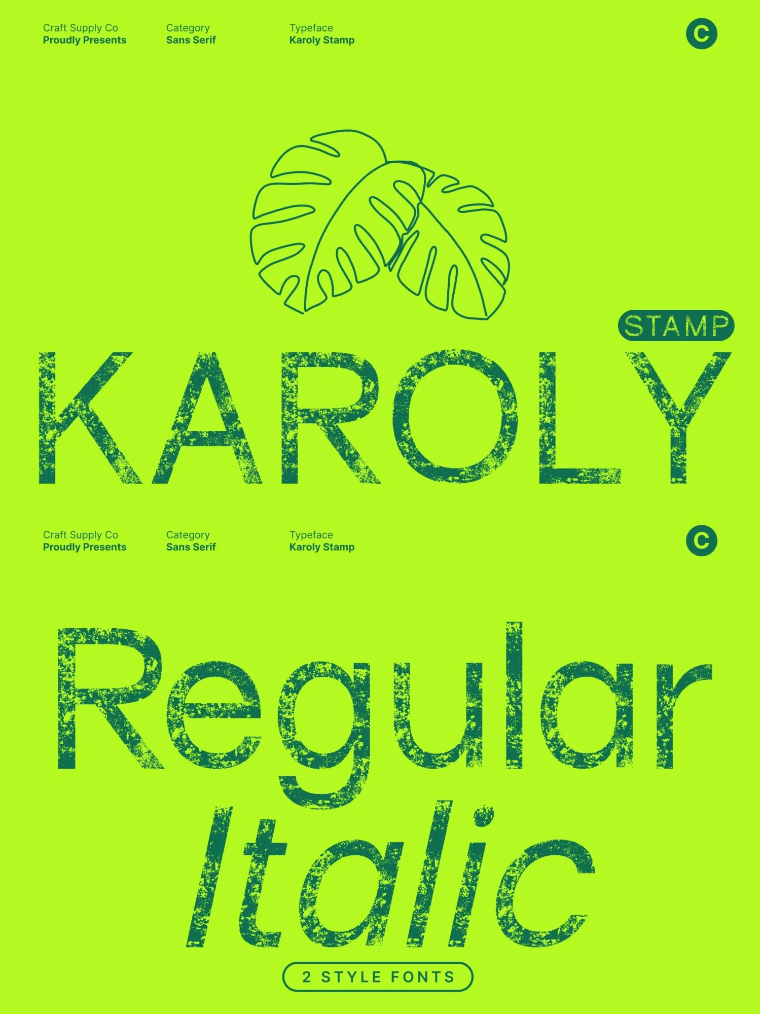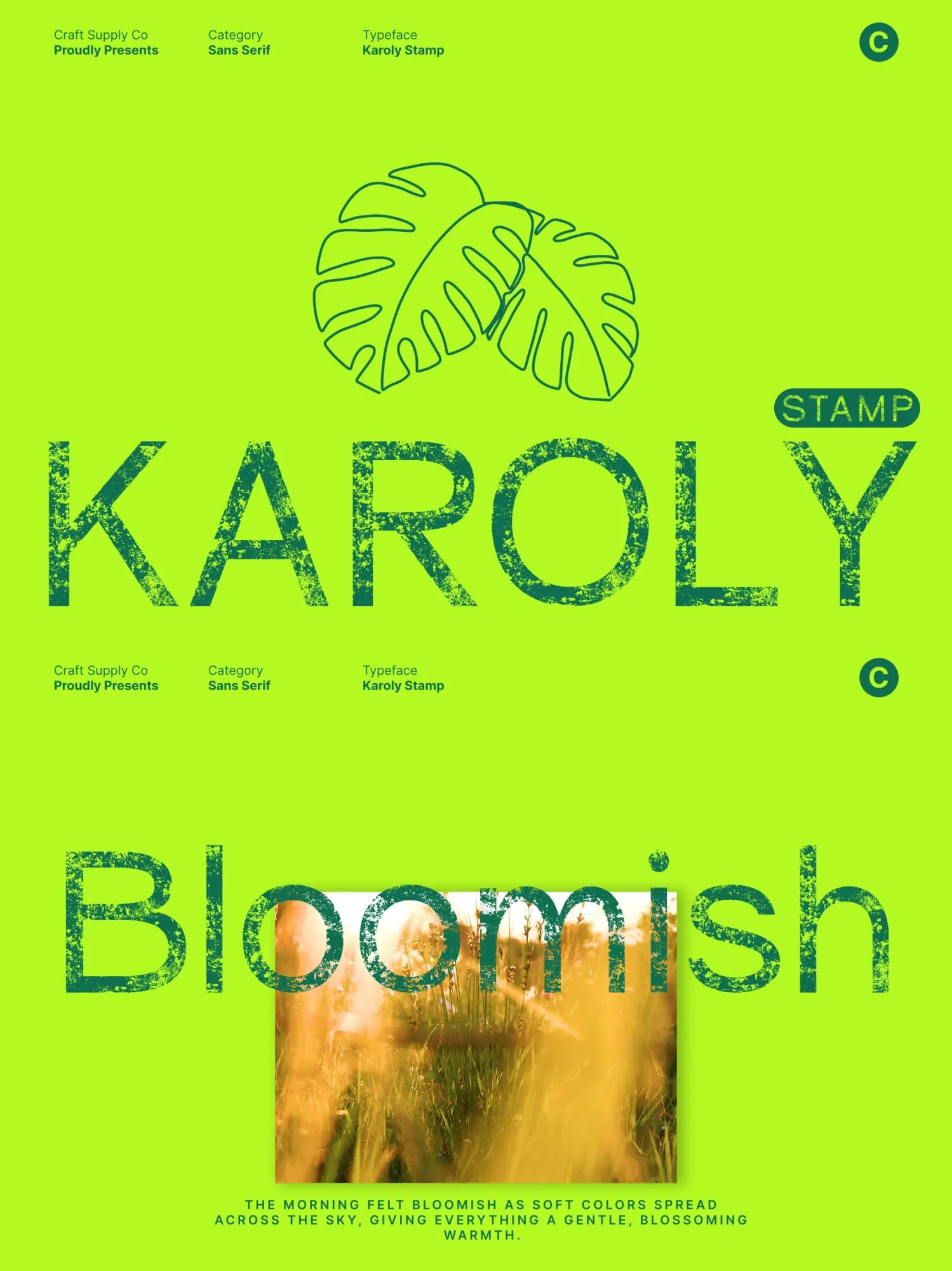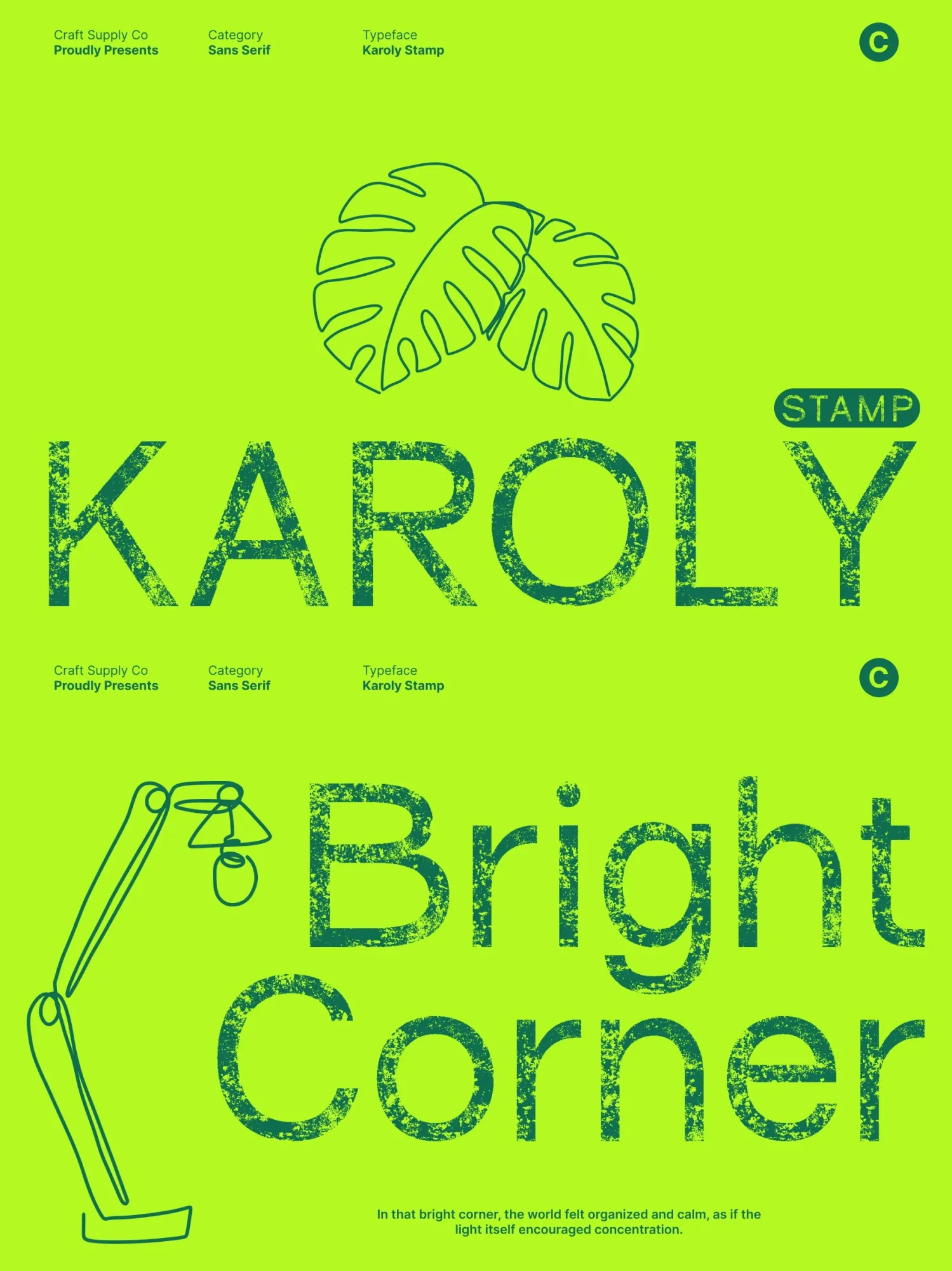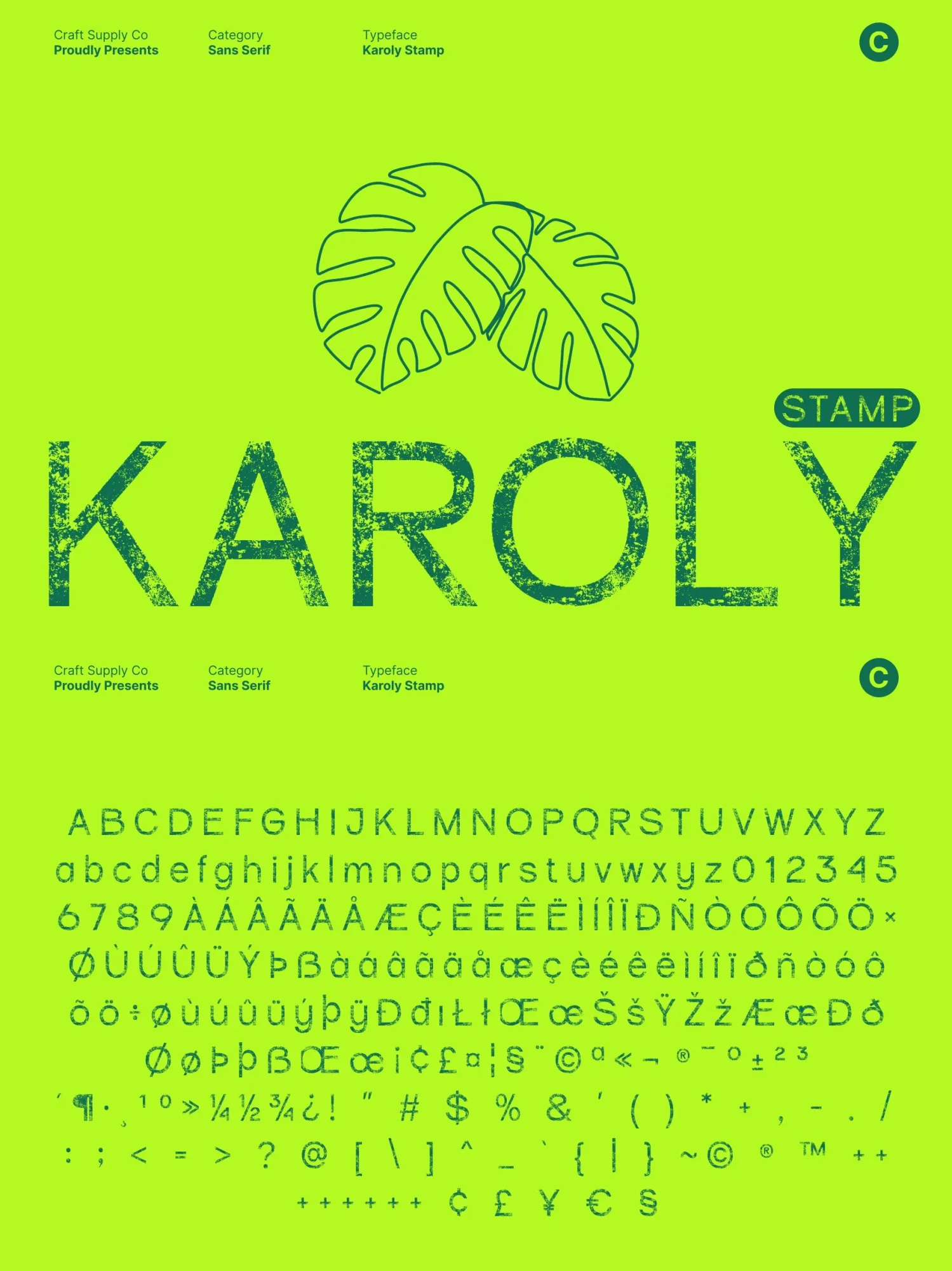 This font excels in display settings, making it perfect for branding, packaging, editorial headers, posters, and logo design. Its clean geometry ensures a strong, contemporary identity, while the stamped texture adds personality, warmth, and visual depth.